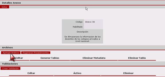 a) Para agregar un archivo se selecciona el nombre del anexo al cual desea agregarle el archivo, y en la parte inferior de los datos del anexo se observa un botón que dice “Agregar Archivo”, así como lo muestra la figura.