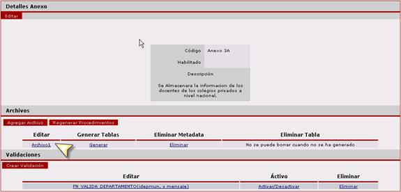 En Pantalla visualizará el listado de archivos. Para continuar con el Proceso de Configuración haga Clic sobre el Link asociado al Nombre del Archivo para acceder a los “Detalles Archivo”.