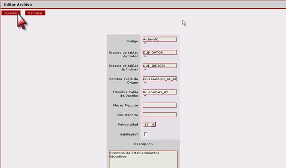 e) Al hacer clic en el botón editar de la parte superior de la pantalla de “Detalles Archivo” muestra: